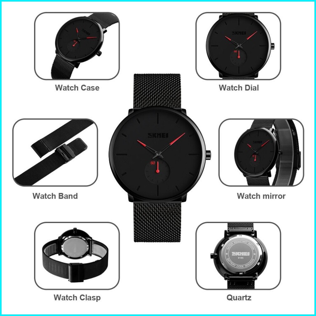 Skmei 9185 Jam Tangan Pria Wanita Analog Tali Stainless Chronograph Watchkite Wkos