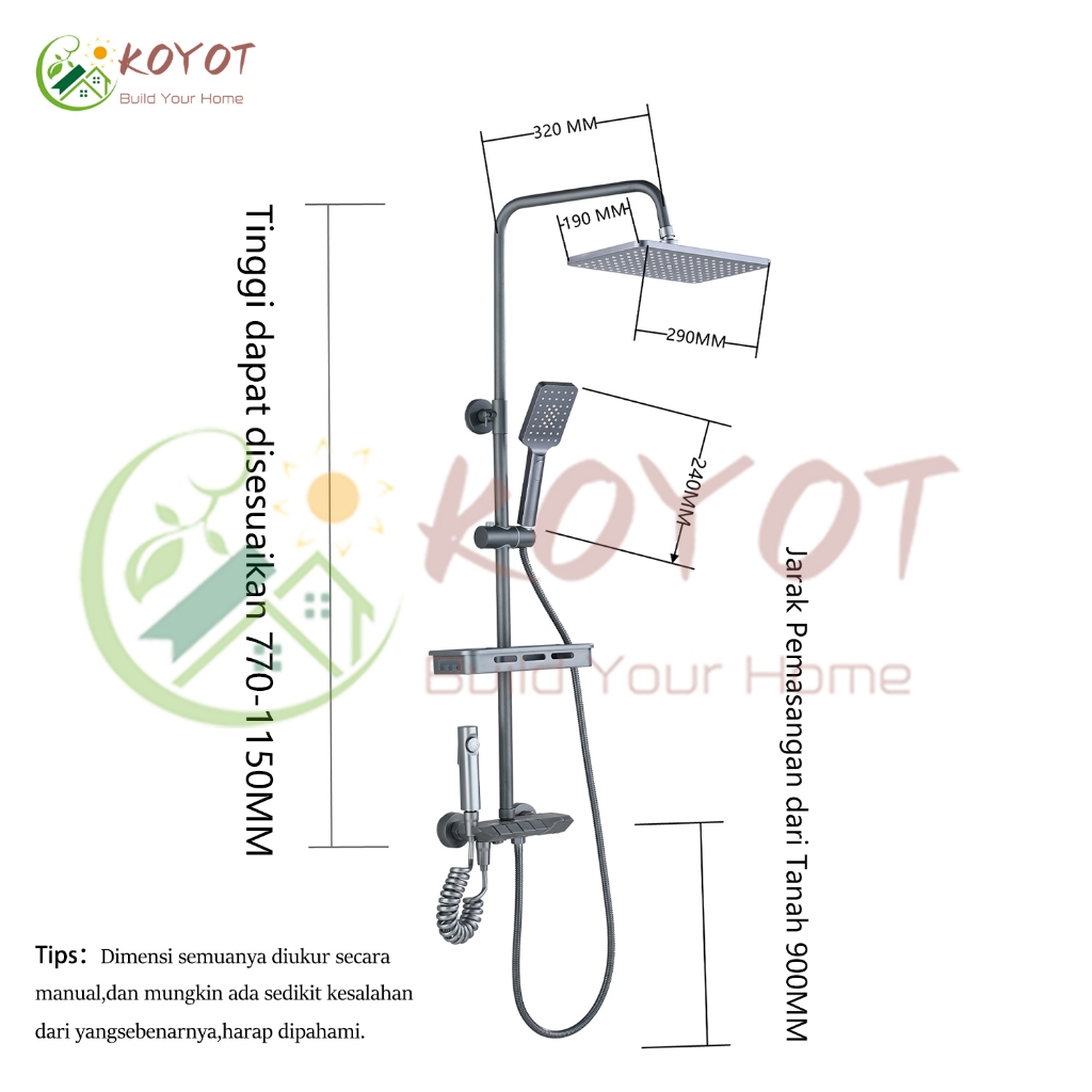 Shower Kamar Mandi Full Set Panas Dingin Desain Tuts Piano dengan Mixer Panas Dingin 4 Ways