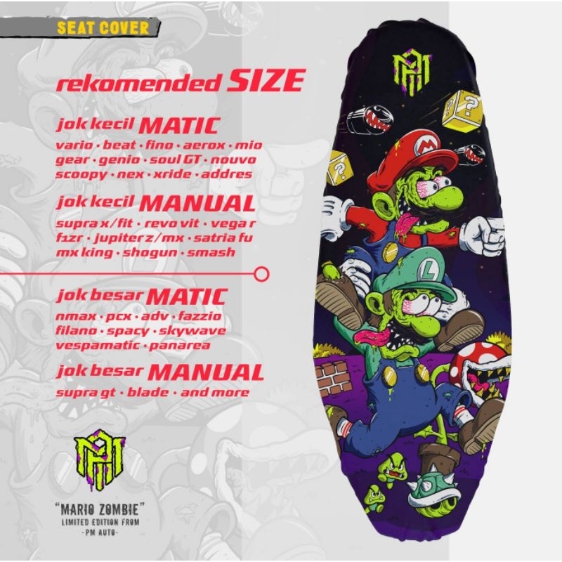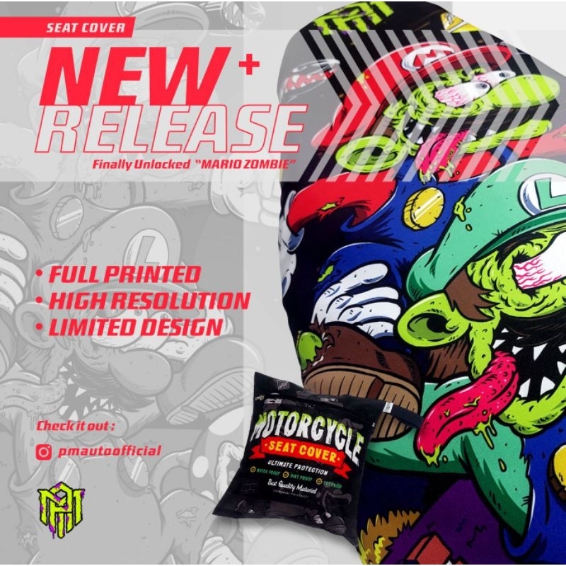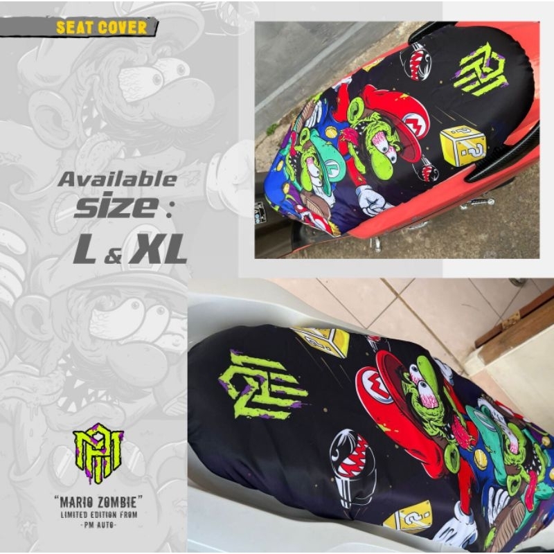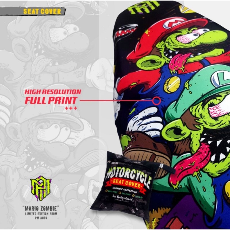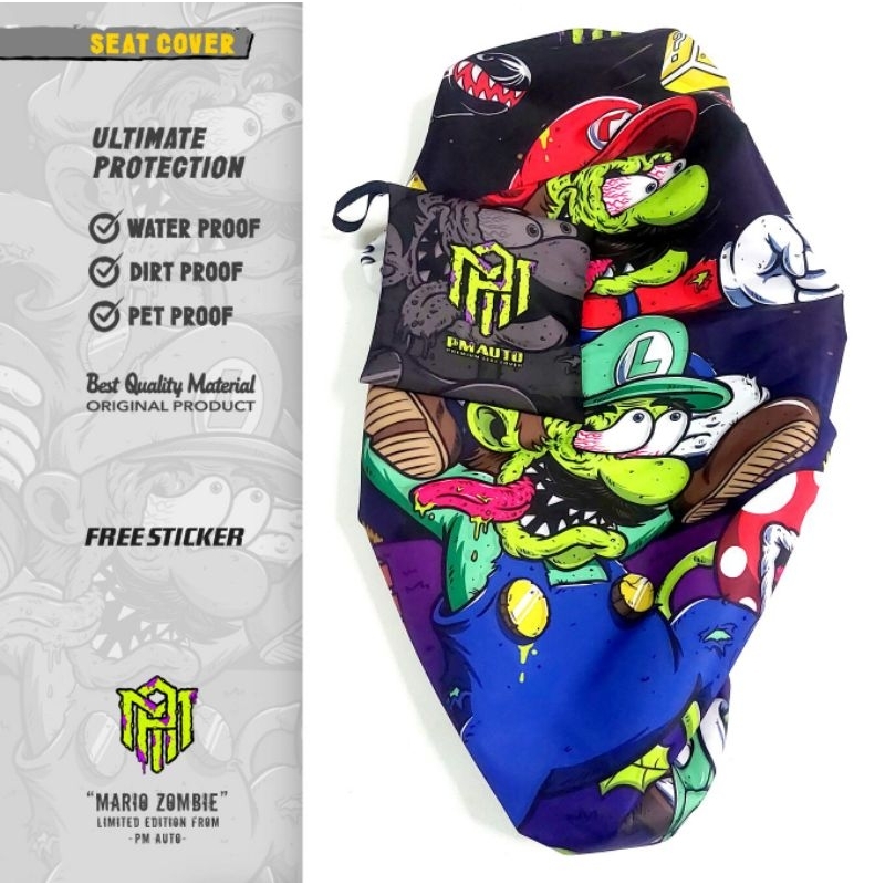 Cover Jok Sarung Jok Motor Anti Cakar Kucing,Anti Air Full Print Motif Mario Zombie