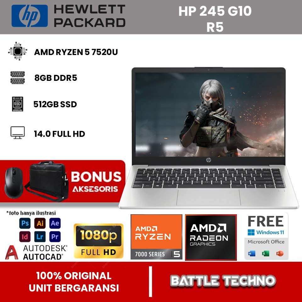 Laptop HP 245 G10 AMD Ryzen 5 7520U RAM 8GB 512GB SSD Nvme Full HD Finger Print Windows 11 Home