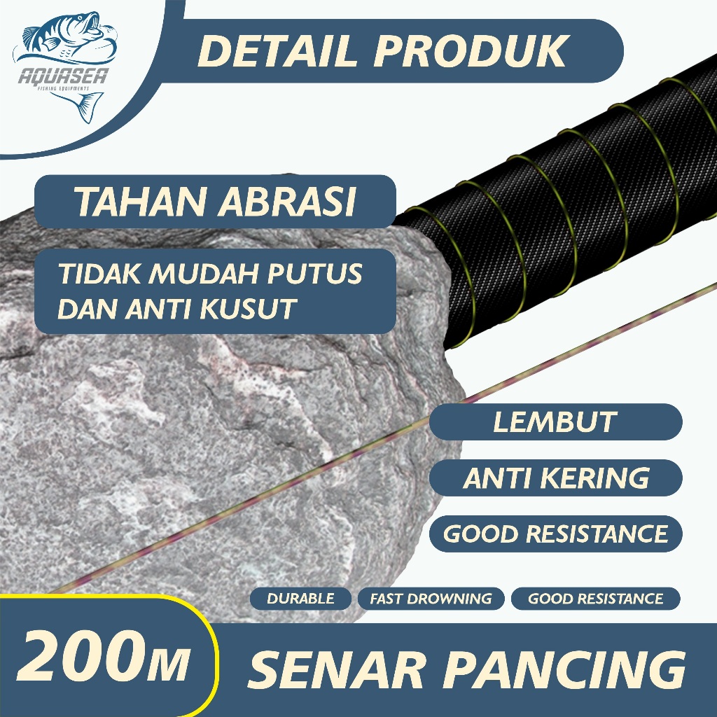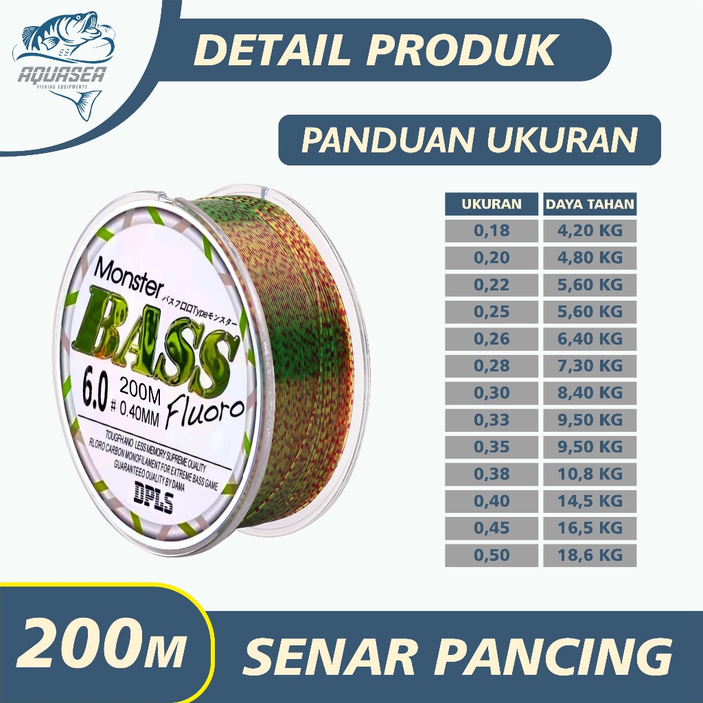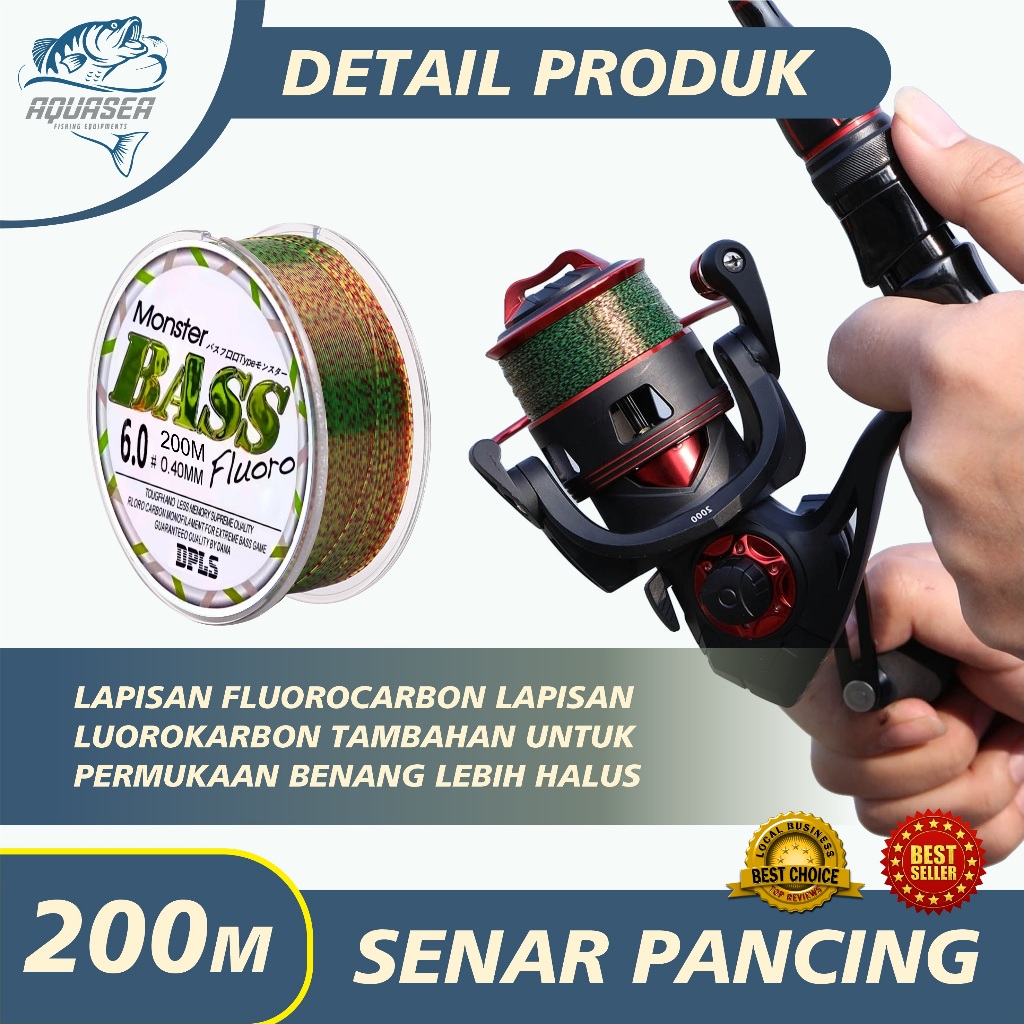 AQUASEA Tali Pancing Bass FLUOROCARBON 200M Hijau Lumut Bahan Nilon