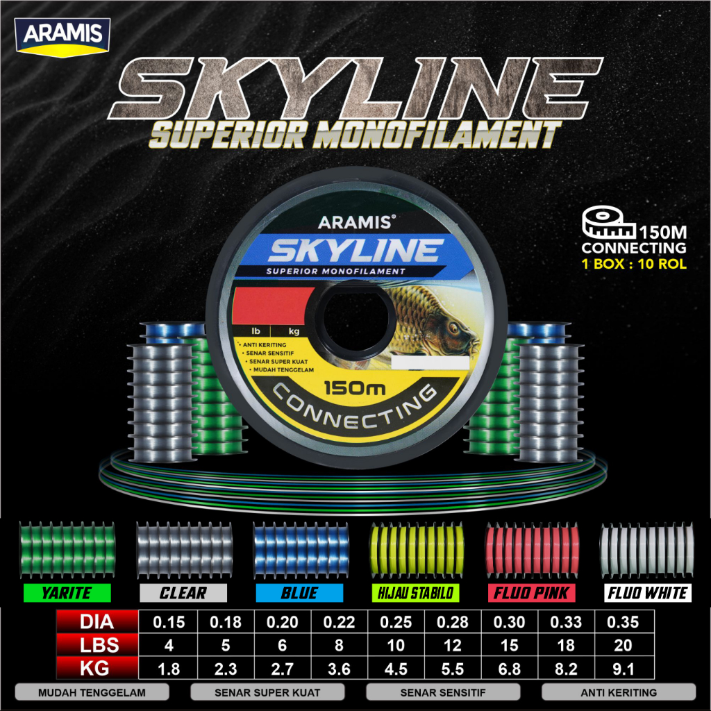 EXTRA BONUS | Senar Pancing Aramis Skyline Superior Nylon Monofilament Material 150 Meter Connecting Senar Kuat mudah te