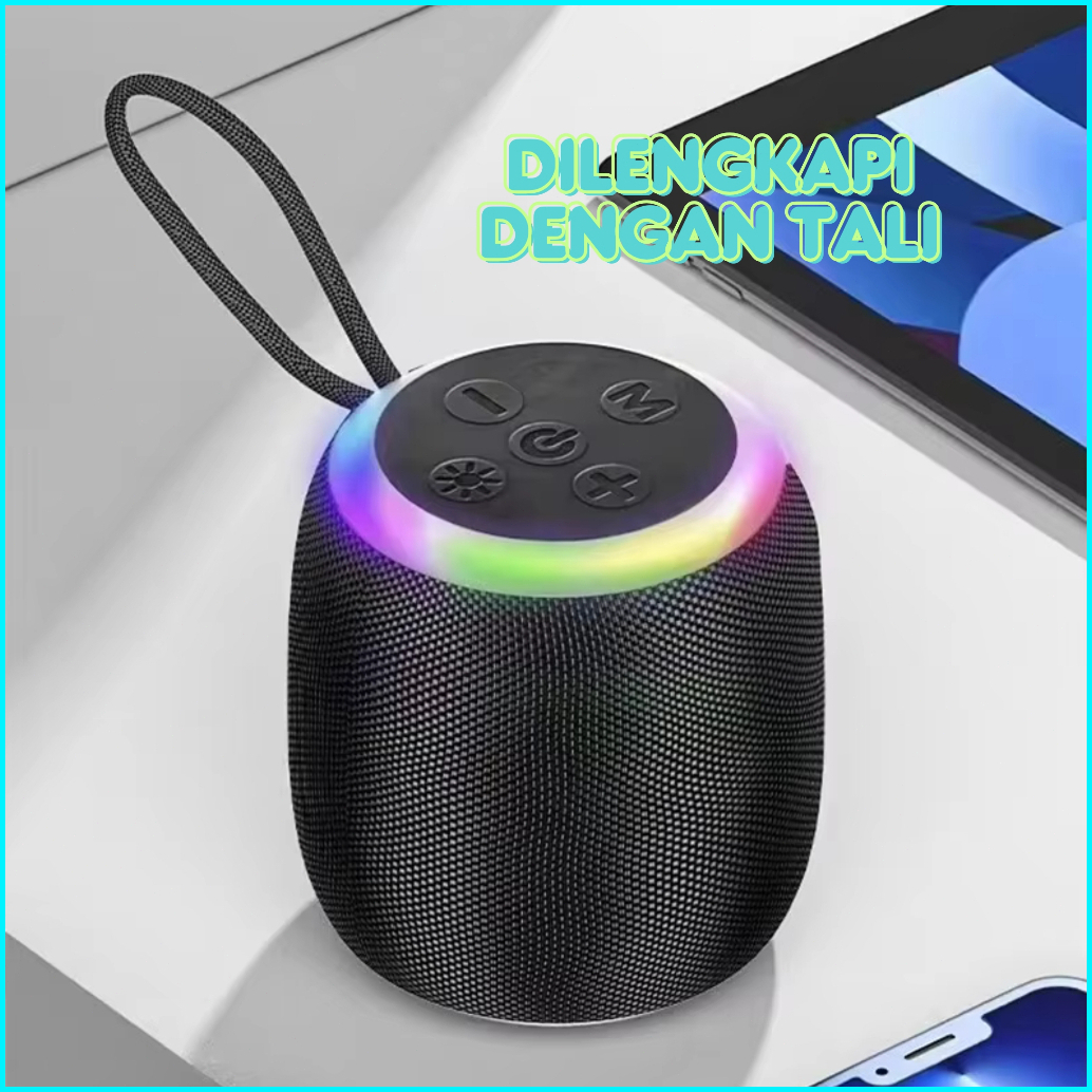 Wjoy Speaker Wireless With Rgb Light Subwoofer Portable Bluetooth 5.0 Dengan Tali Handle Sound Stereo Bass Untuk Musik T