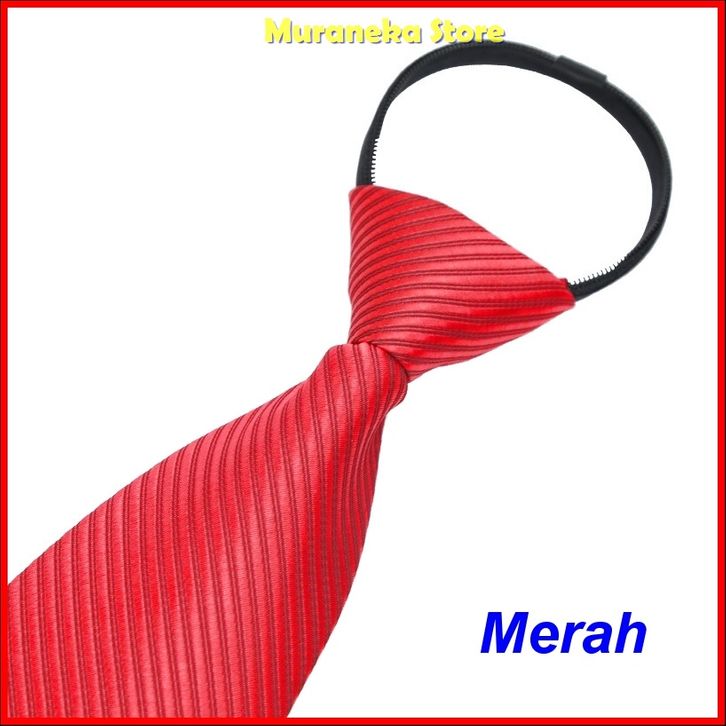 Dasi Pria Instan Resleting Garis Salur Langsung Pakai Jadi Otomatis Hitam Formal Merah Warna Biru Tie Necktie Polos Dasi