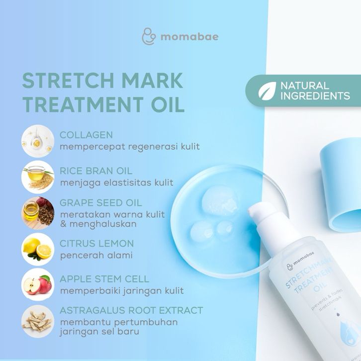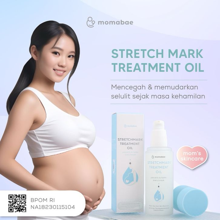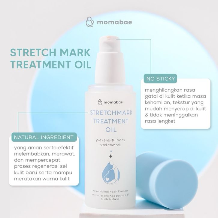 MOMABAE - Stretchmark Oil Treatment | Minyak Pemudar Stretchmark Terdaftar BPOM | Minyak Pereda Stretchmark