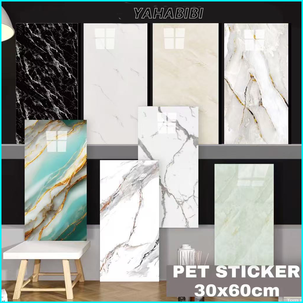 Ecosen 20pcs Wallpaper Dinding Vinyl 30cm X 60cm X2mm Lantai Vinyl Marbel Granit Stiker Lemari Cabinet Marbel