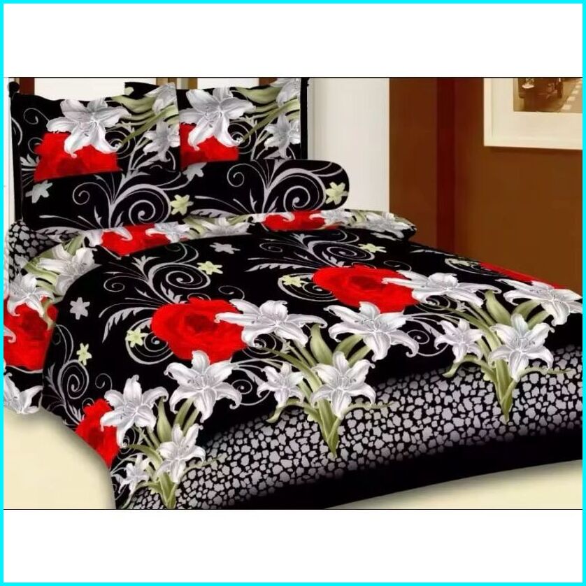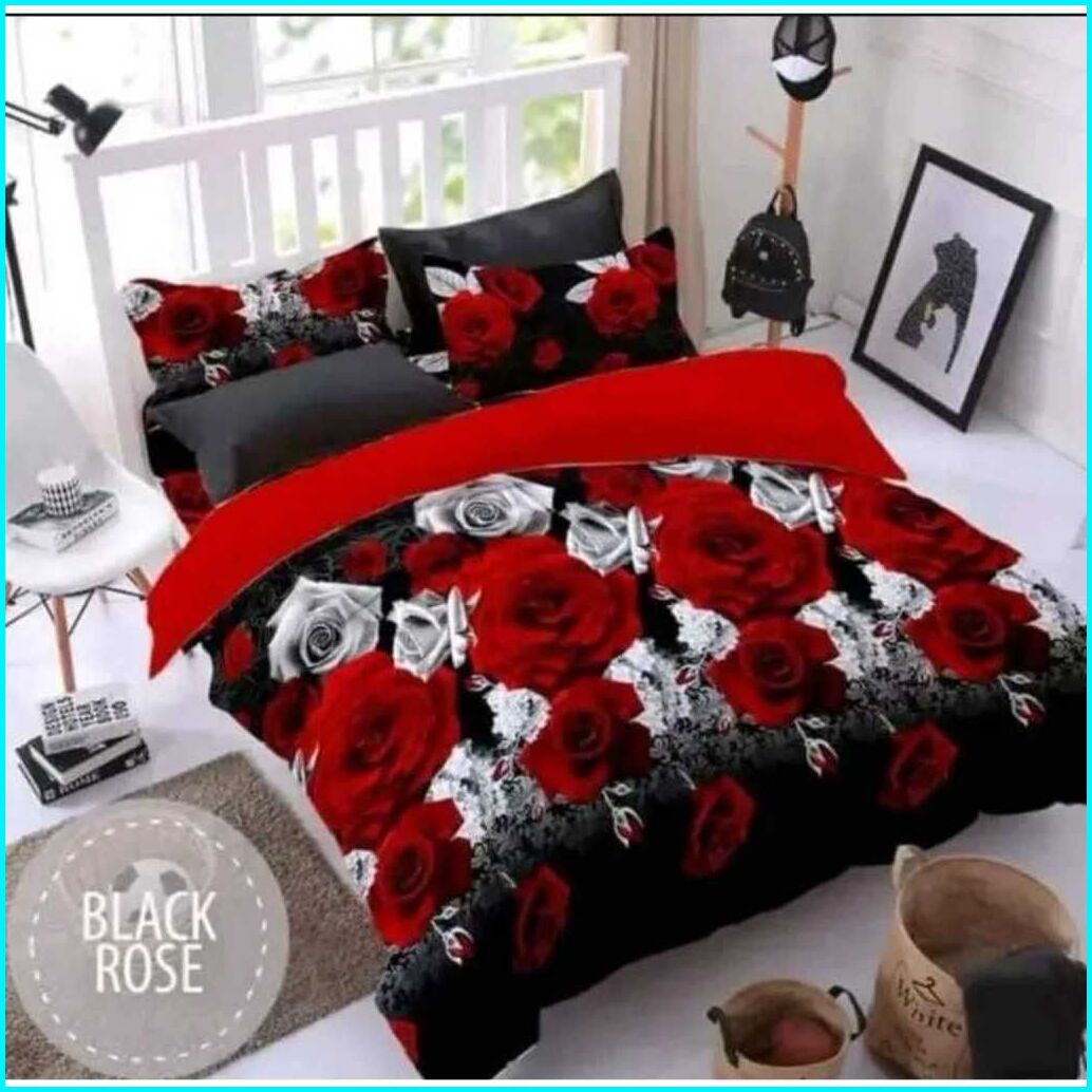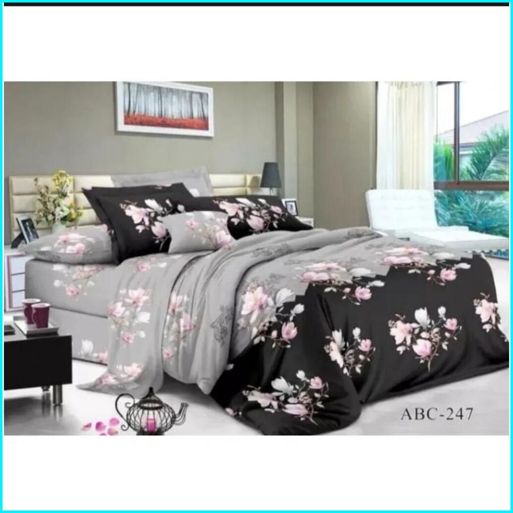 Seprai Bonita Anti Luntur Uk 180x200 160x200 120x200 1set Sarung Bantal Guling Sprei Bunga Motif Rose Black Katun Premiu