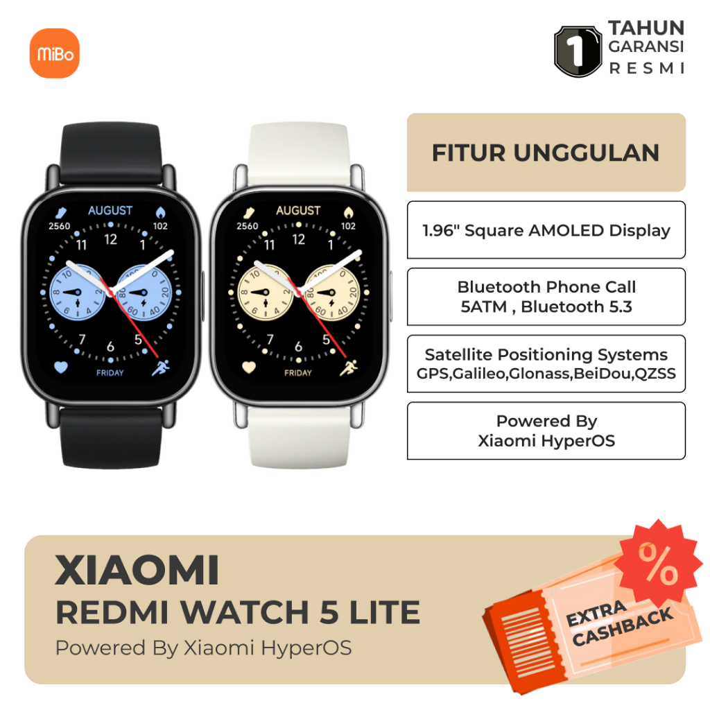 Xiaomi Redmi Watch 5 Lite 1.96" AMOLED 5ATM Built-in GNSS AOD BT Call Garansi Resmi