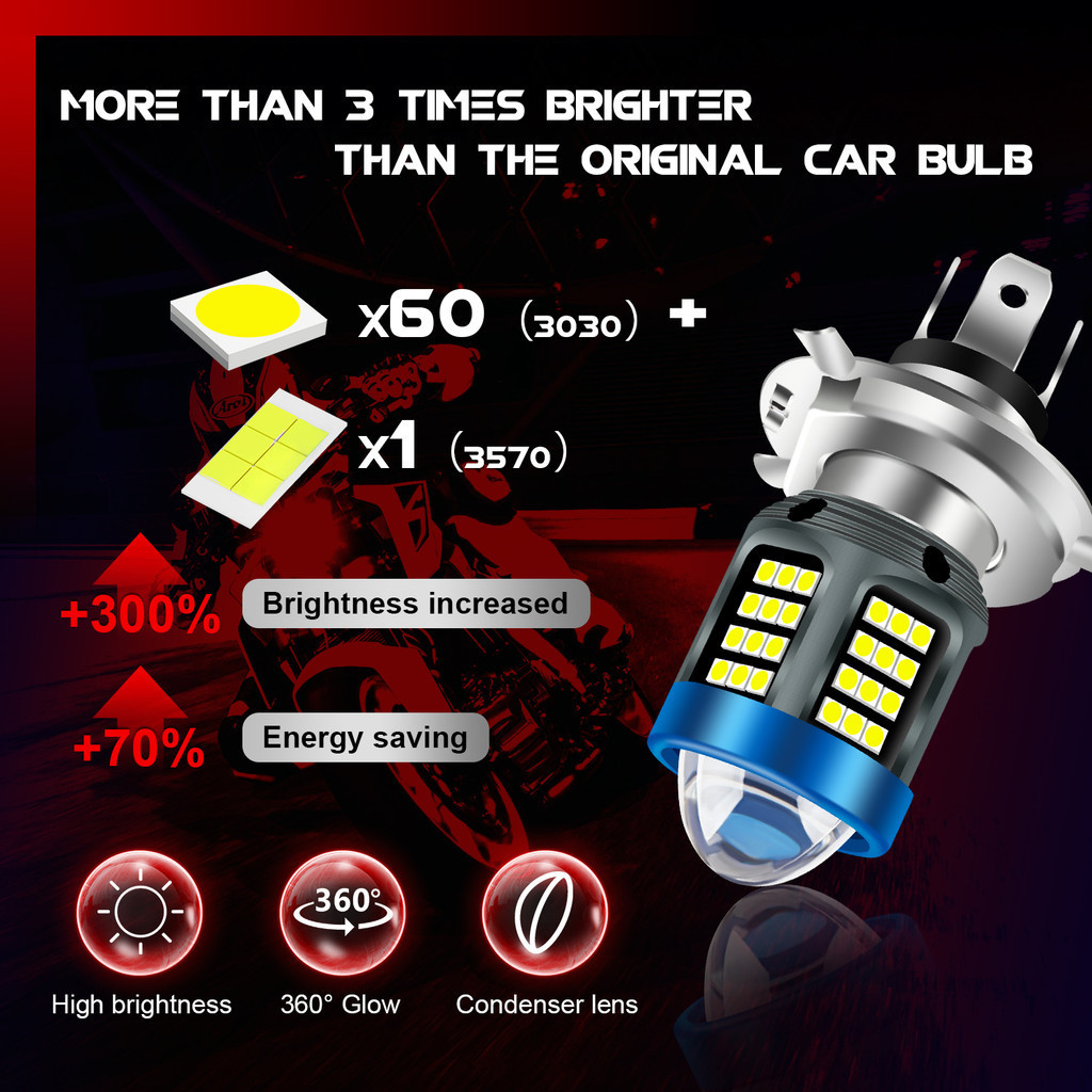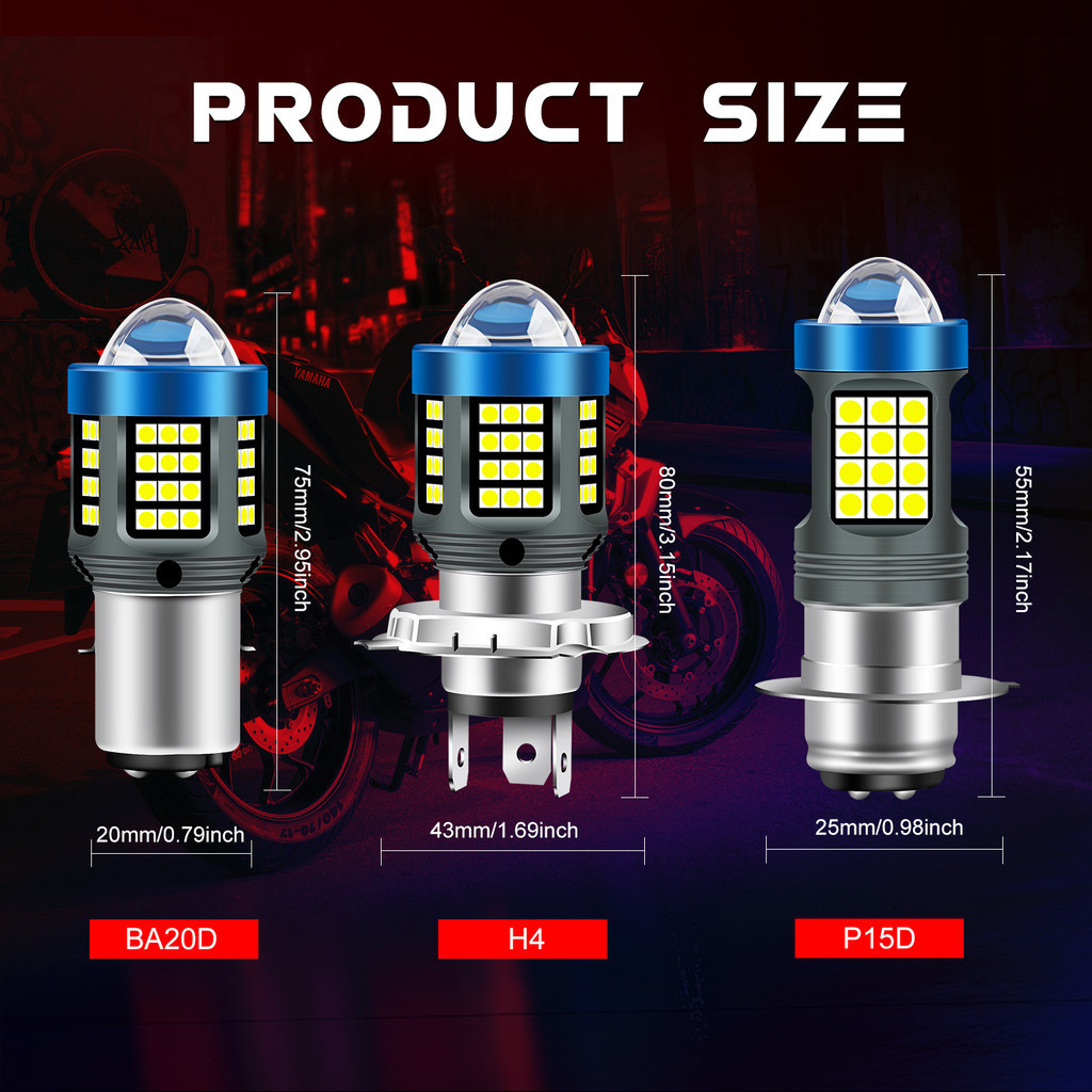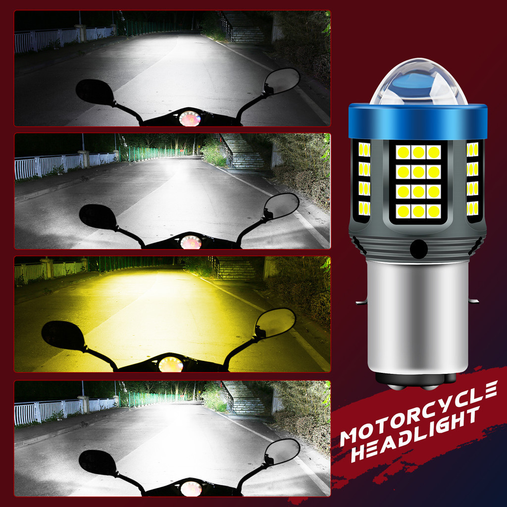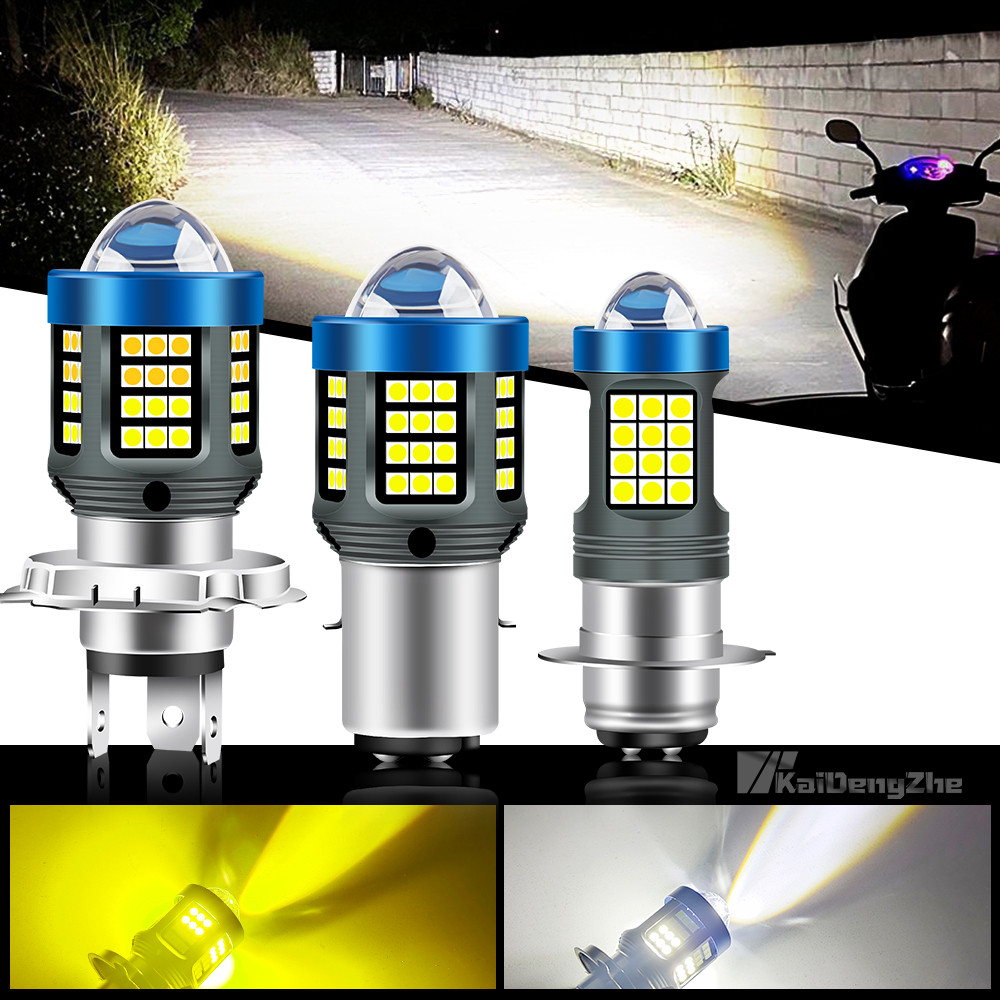 Lampu LED Motor 12V-80V H4 BA20D P15D T19 66SMD 2 Warna 3000LM H6 Lampu Depan Motor LED Balok Tinggi/Rendah untuk Motor