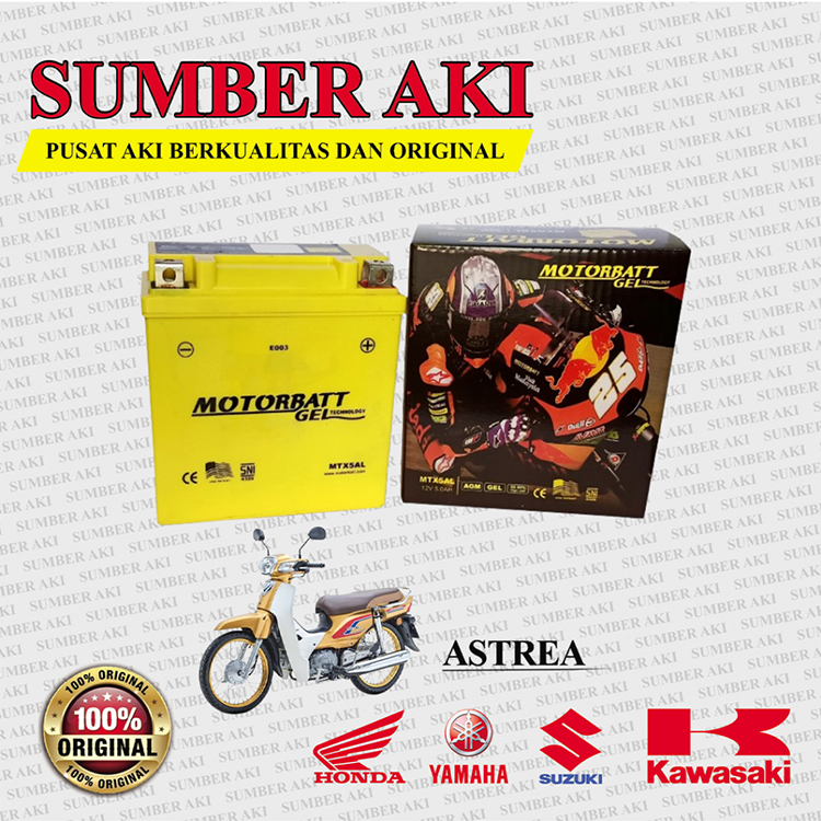 Aki Kering MOTORBATT MTX5AL 12V 5Ah Gel Motor Astrea Grand Supra Fit Jupiter Z Smash Mio Sporty Mio Smile Shogun Fizr