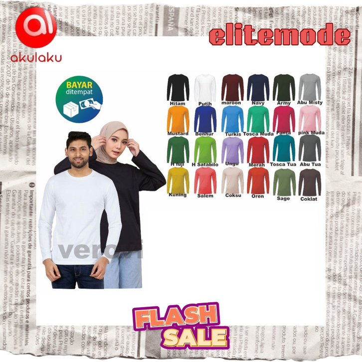 Kaos Polos Lengan Panjang Dewasa | Unisex Cotton Combed Ukuran M-XXL Murah