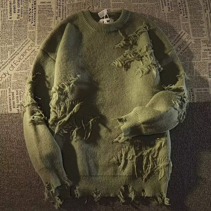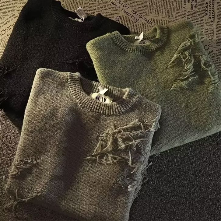 Men's American-Style Retro High Street Idle Style Ripped Knitted Sweater
