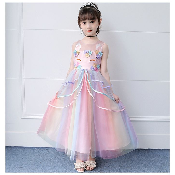 Gaun Pengantin Anak Unicorn Princess Panjang 3-12 Tahun untuk Acara Spesial