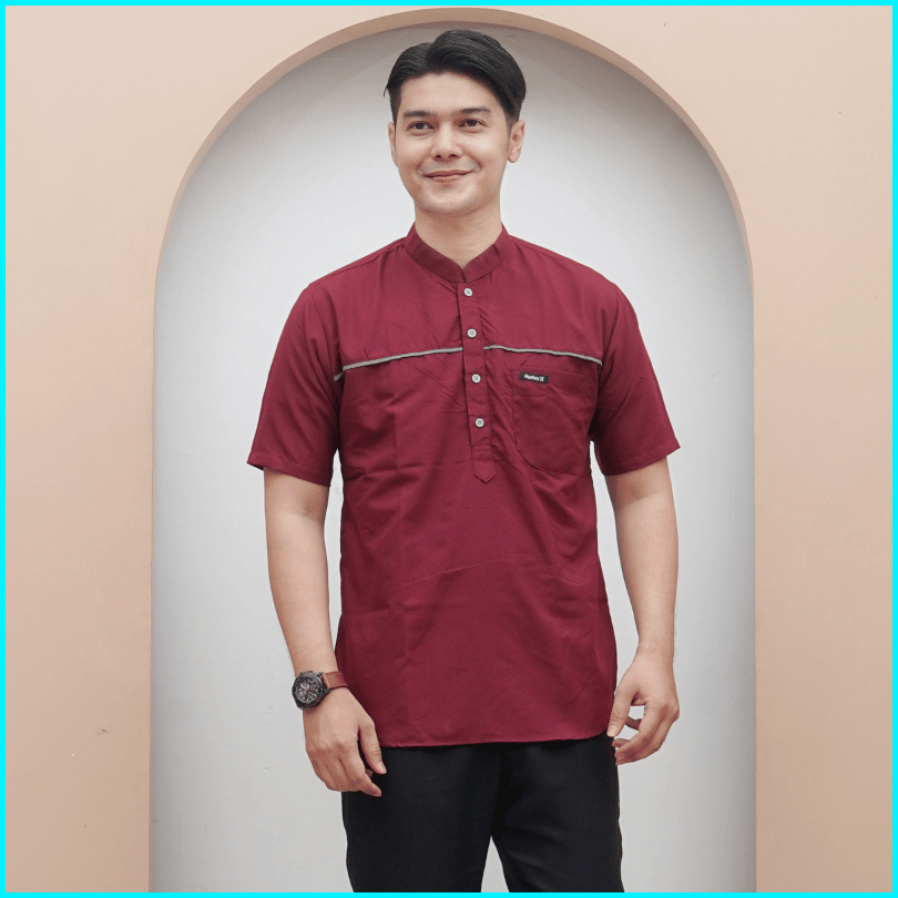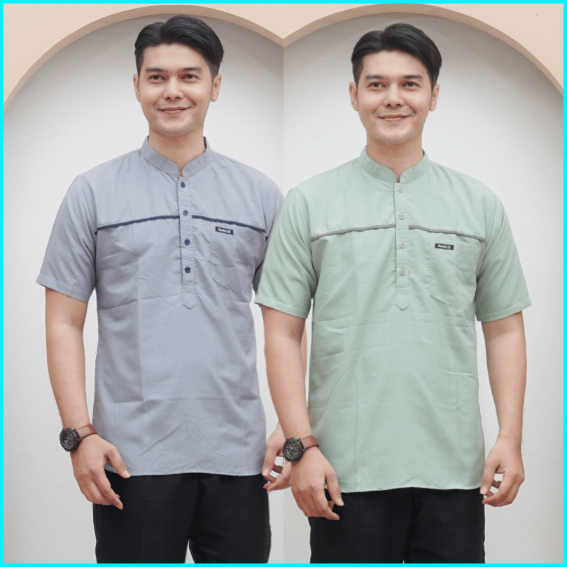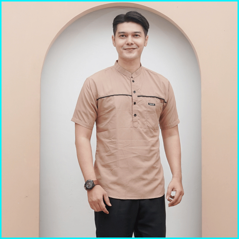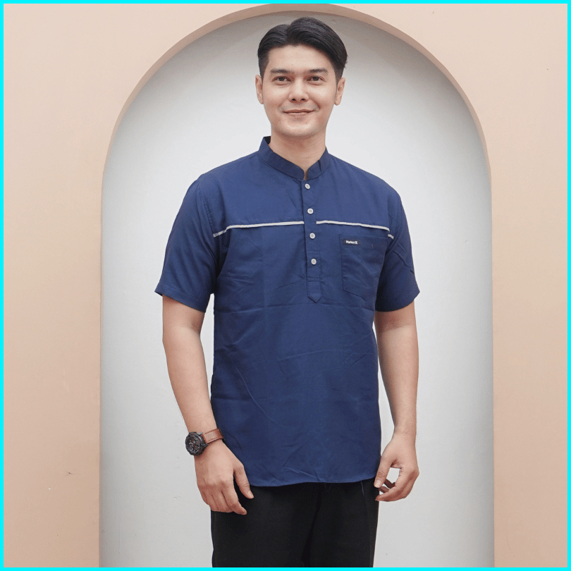 Baju Koko Pria Dewasa Lengan Pendek Terbaru Koko Kurta Shanghai Material Katun Serap Keringat Halus