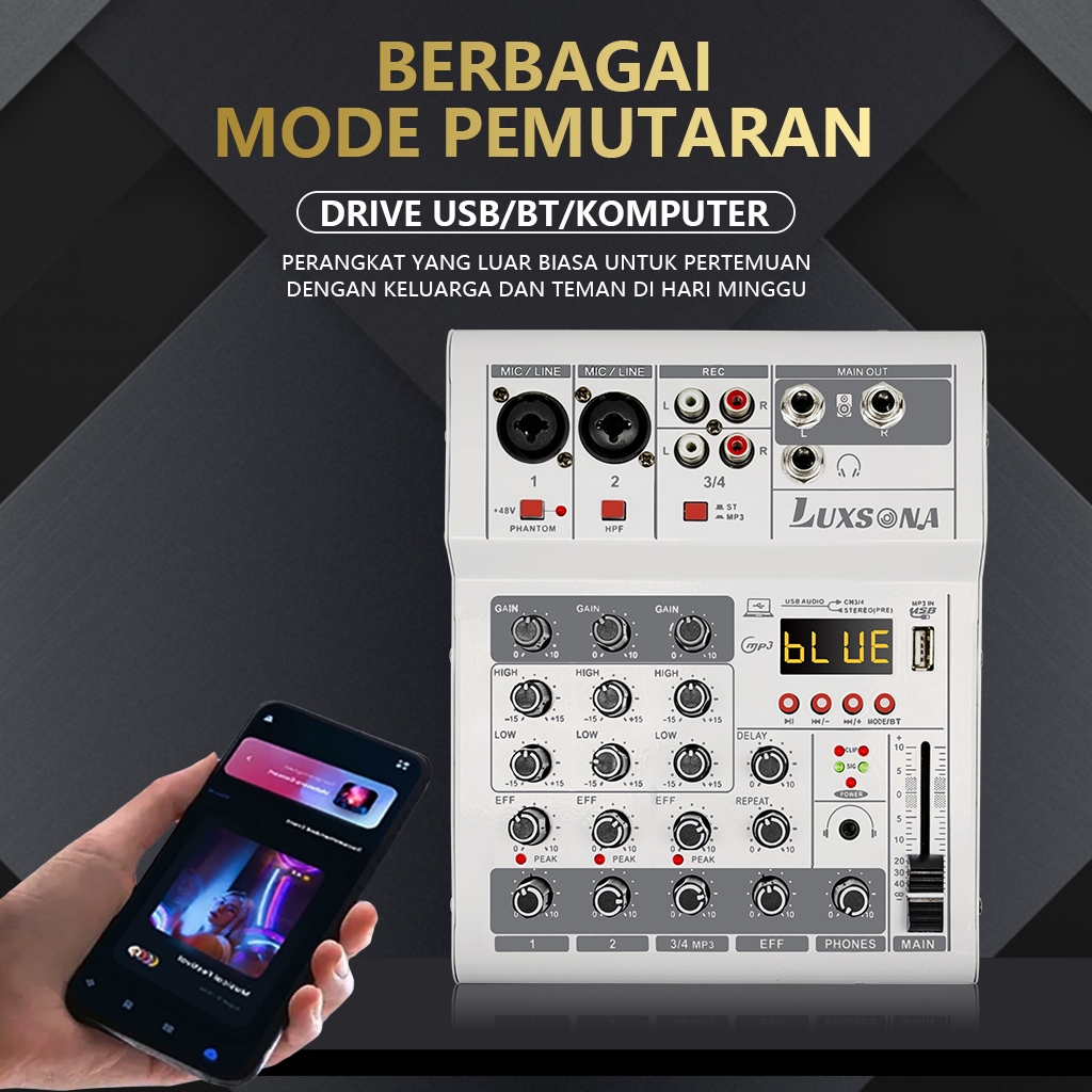 LUXSONA Mixer 4 Channel Audio Mixer Mini Soundcard USB Bluetooth mixer murah cuci gudang mendukung peralatan Bluetooth/M