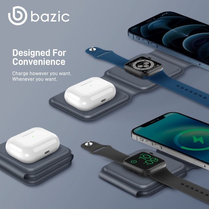 Foldable Magnetic MagSafe Wireless Charger 3-in-1 BAZIC GoMag Trio Plus