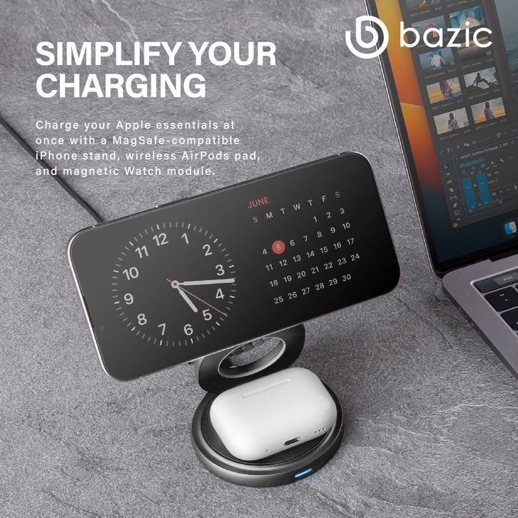 Magnetic Wireless Charger 3IN1 Foldable MagSafe 15W BAZIC GoMag Gyre