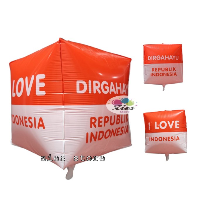 Balon Foil Dirgahayu RI Kubus / Balon Foil 17 Agustus Merah Putih