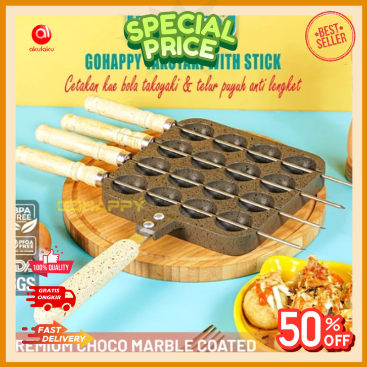cetakan takoyaki CETAKAN KUE CUBIT TAKOYAKI GOHAPPY Anti lengket creamy panci marble cetak poffetjes ball pan terlaris