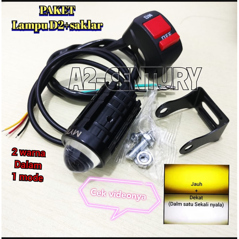 paket lampu + saklar laser foglamp d3 superbright high low mini driving lampu tembak laser Lampu Sorot Motor