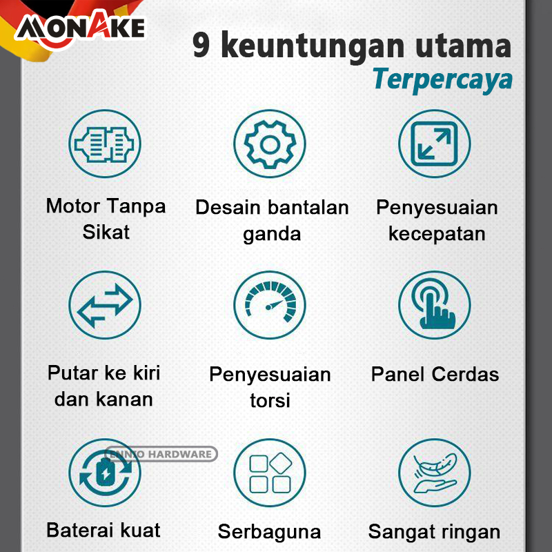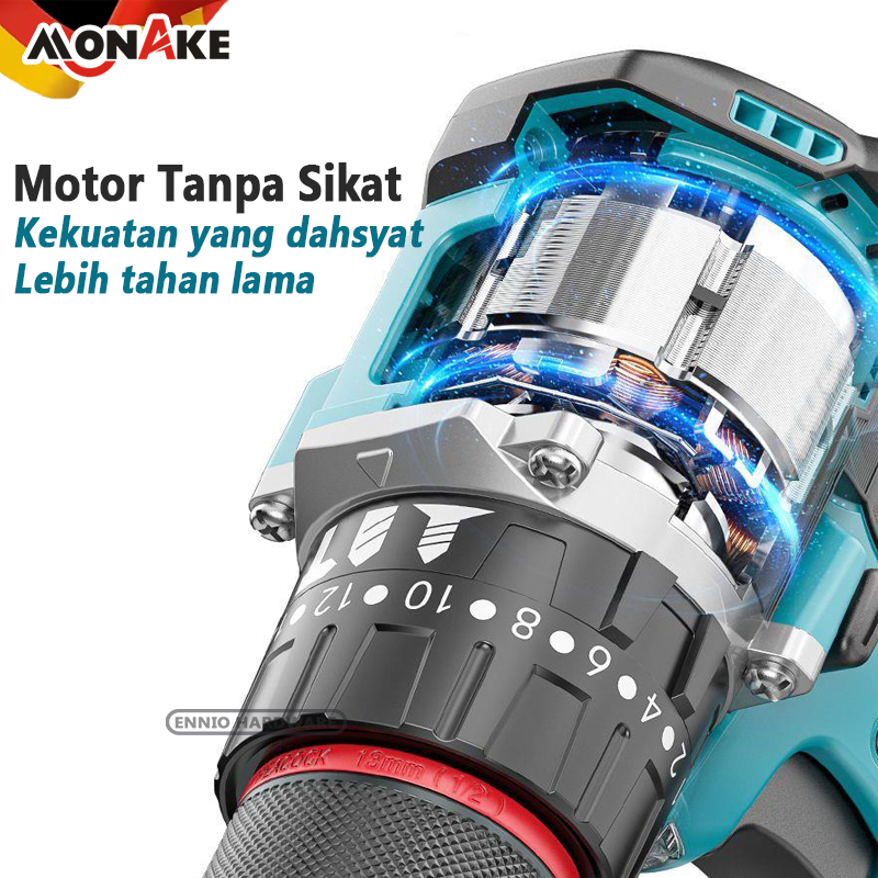MONAKE Alat Jerman Brushless 3in1 Impact Mesin Bor Listrik Bor Baterai Bor Listrik Bor Tanpa kabel Mesin Cordless Screwd