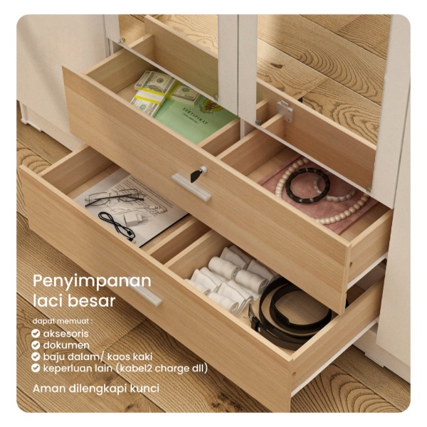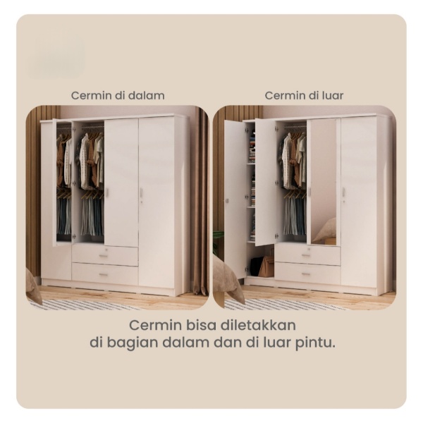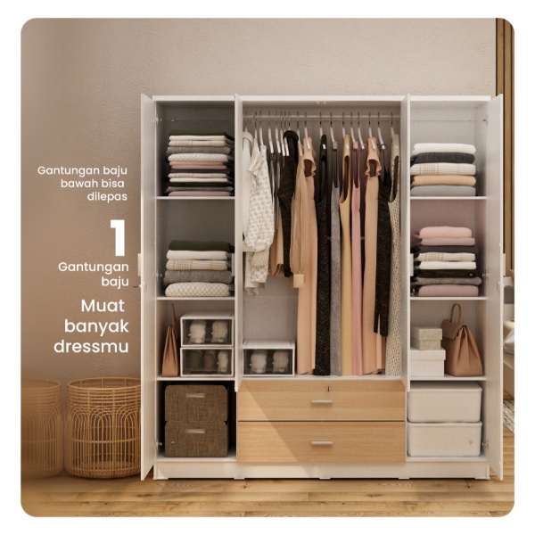 Lemari Pakaian 4 Pintu Dengan Laci Lemari Pakaian Jumbo Minimalis Modern Terlaris Super Kokoh Best Quality
