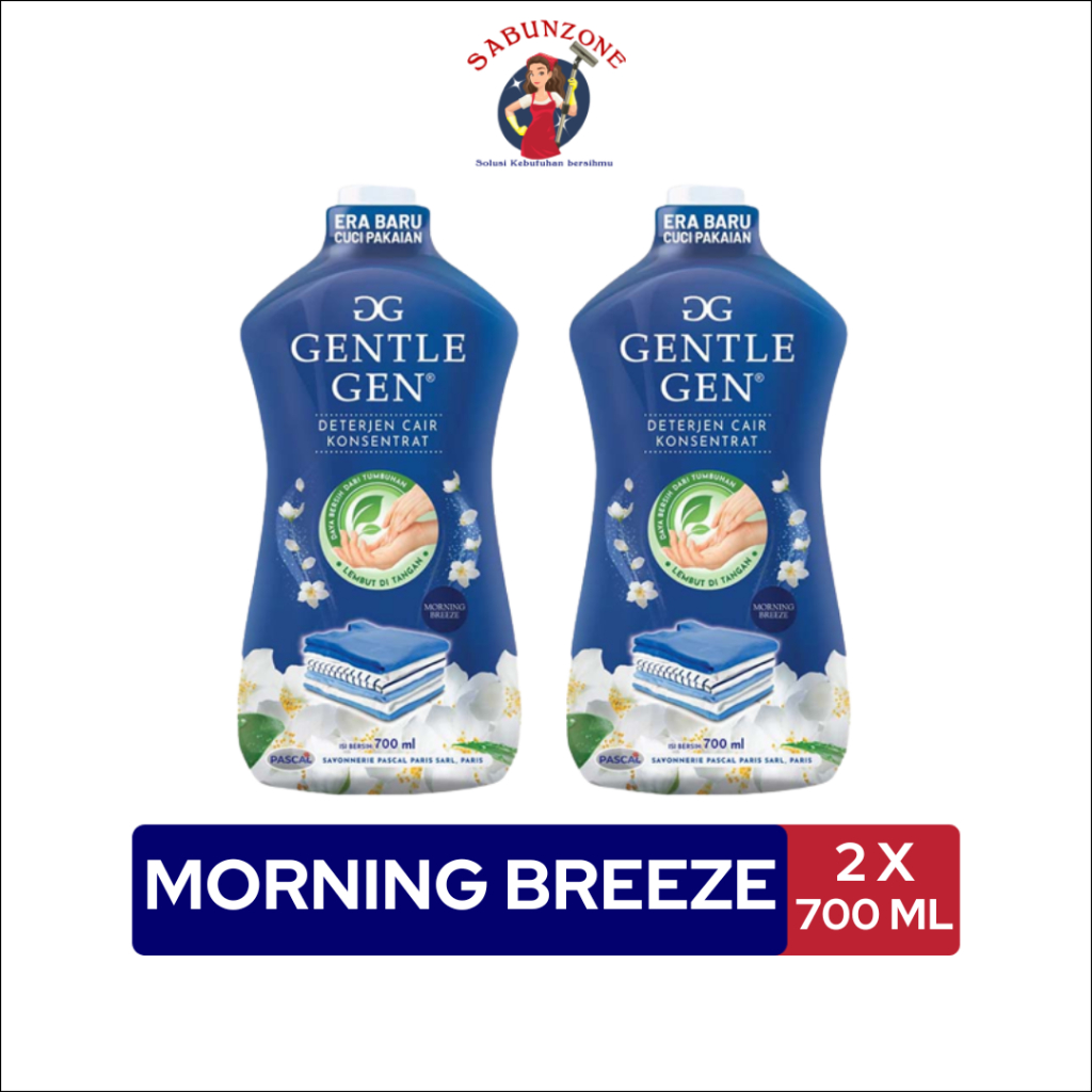 PAKET MURAH DETERJEN CAIR GENTLE GEN MORNING BREEZE 700 ML BIRU X2