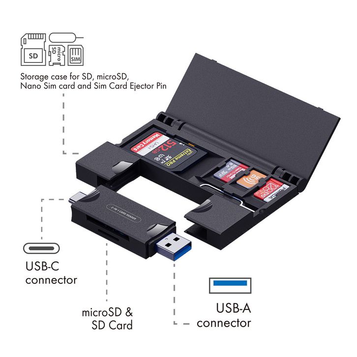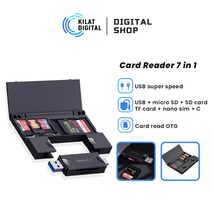 Adaptor Otg 7 IN 1 Multi-function data card sd card organizer with OTG card reader USB2.0 Type-C Adapter Card Storage B