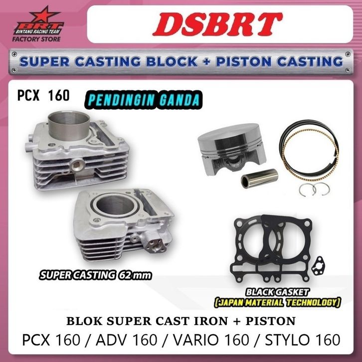 BLOK BRT CAST IRON 62mm PCX 160 VARIO 160 STYLO 160 ADV 160 + PISTON 62 62mm 180cc