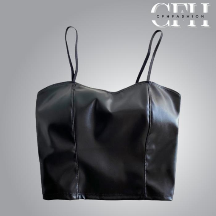 CFH Tanktop Bra With Cup Bh Bahan Kulit Atasan Wanita Singlet Wanita Crop Busa Fit Kamisol Basic Panjang BR778