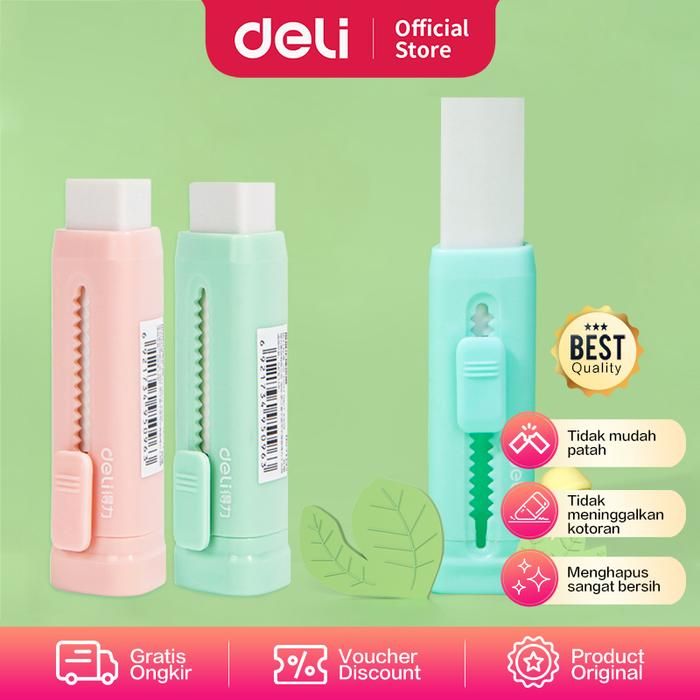 Deli Sliding Eraser / Penghapus Mekanik Warna Lucu Bahan TPR+ABS 71145