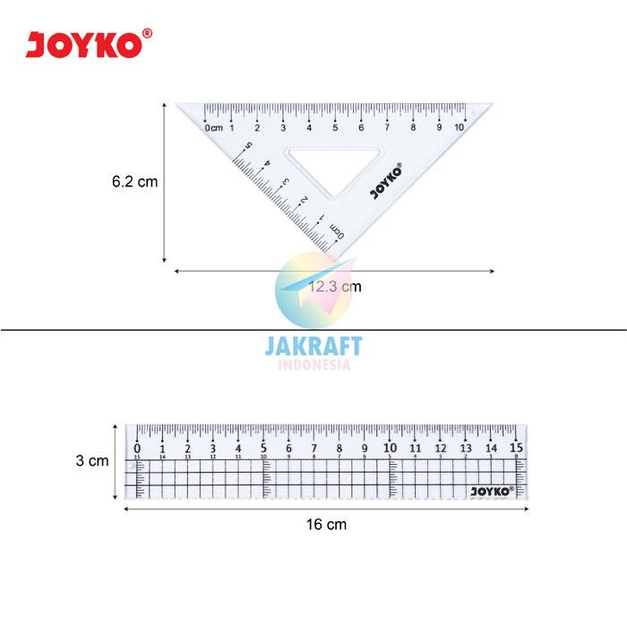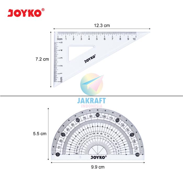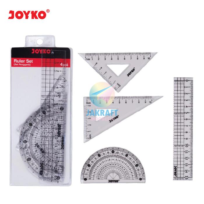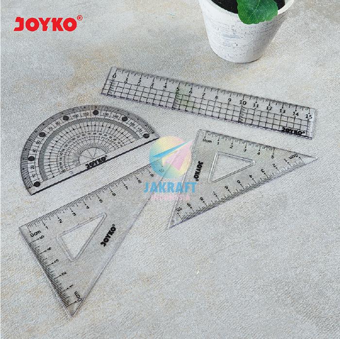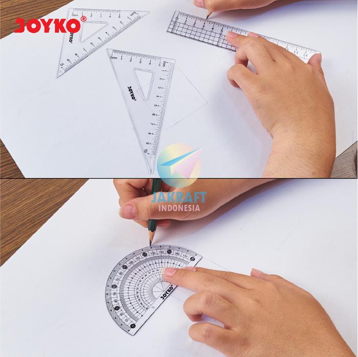 (4 Pcs) Paket Penggaris Matematika Busur Siku Mistar JOYKO Math Set Ruler RL-PS2 Tebal Bening
