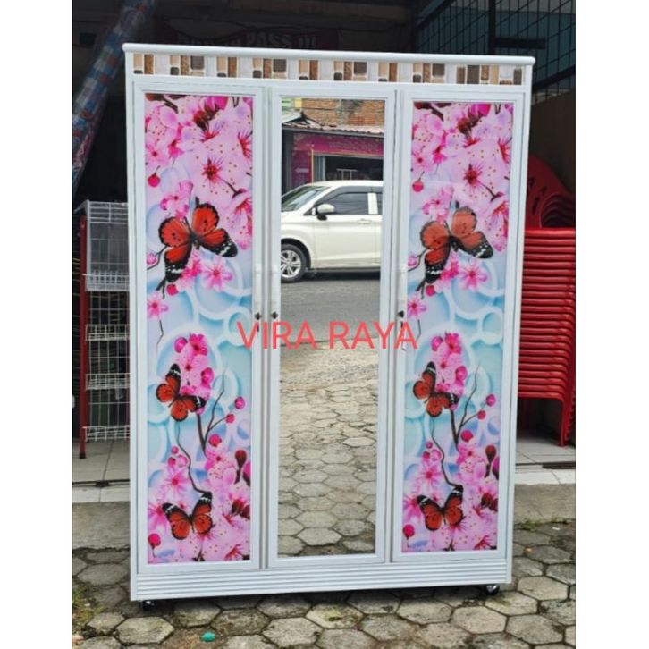 PROMO INSTAN - KARUNIA LEMARI PAKAIAN 3 PINTU ALUMINIUM KACA MOTIF ORIGINAL