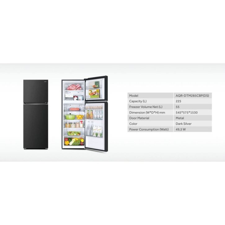 Kulkas 2 Pintu AQUA DTM 285 CBP DS 49 WATT Low Watt Tanpa Bunga Es