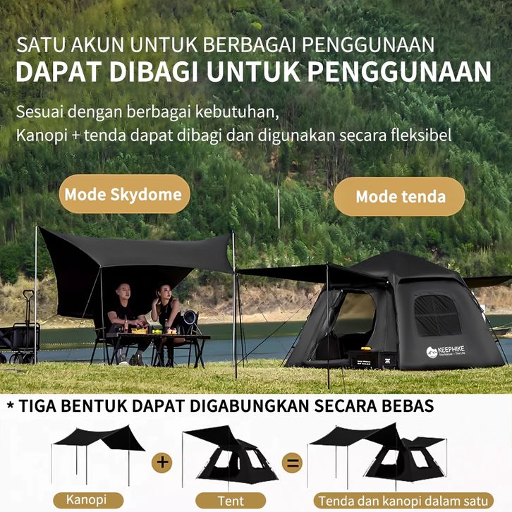 KEEPHIKE tenda hidrolik bukaan otomatis untuk 3-4 orang, tenda lipat, perlindungan matahari dan hujan