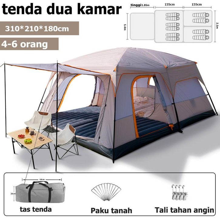 Tenda Camping Outdoor 2 Ruangan Luxury Besar Automatic Keluarga tenda Tenda Glamping Waterproof