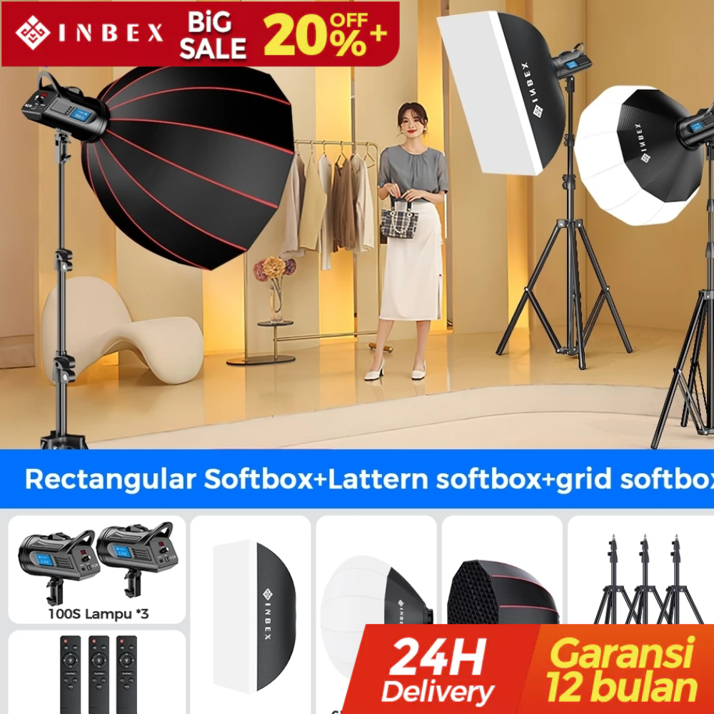 Inbex Il100S Profession Lampu Studio 100W Live Kit Foto Fil Light Led Display Screen Softball Softbox Godox