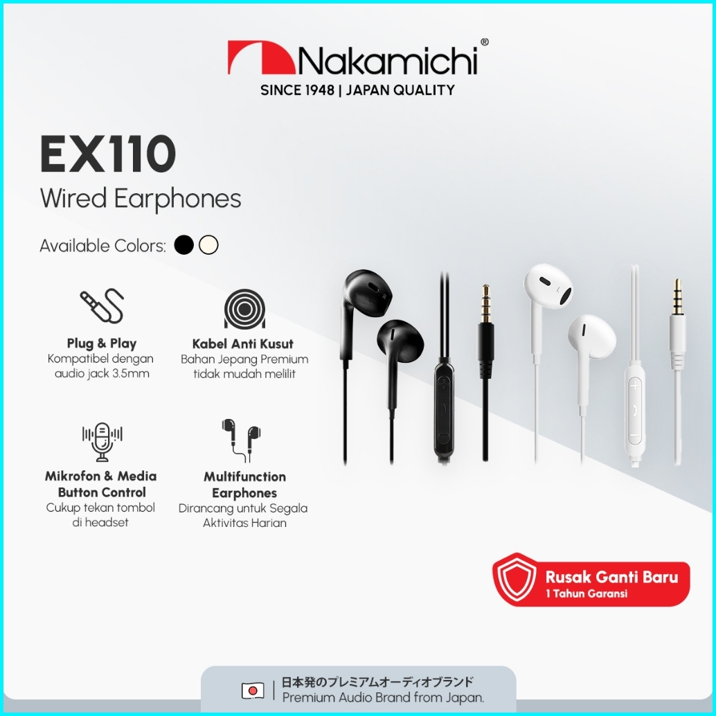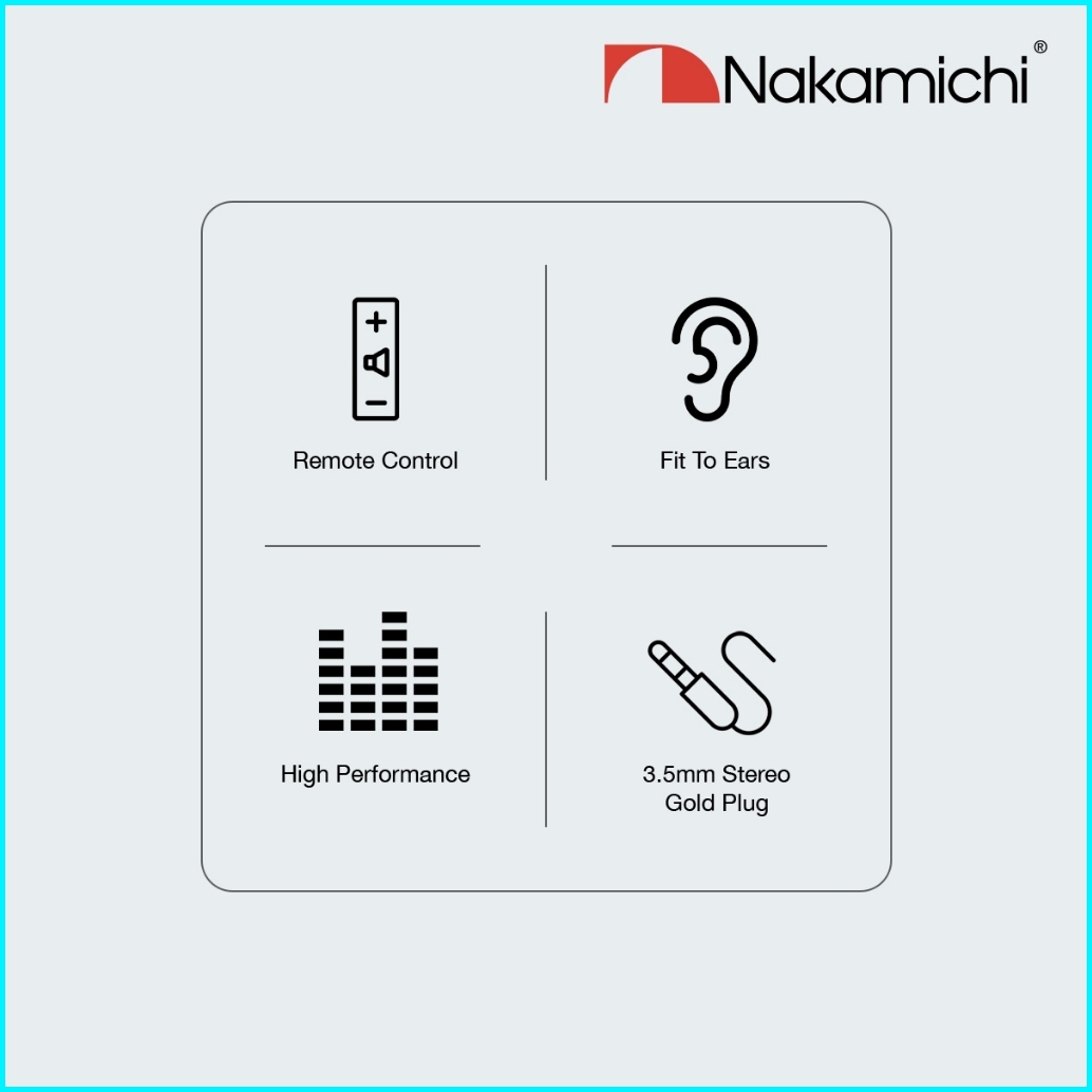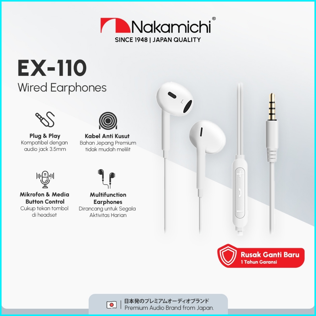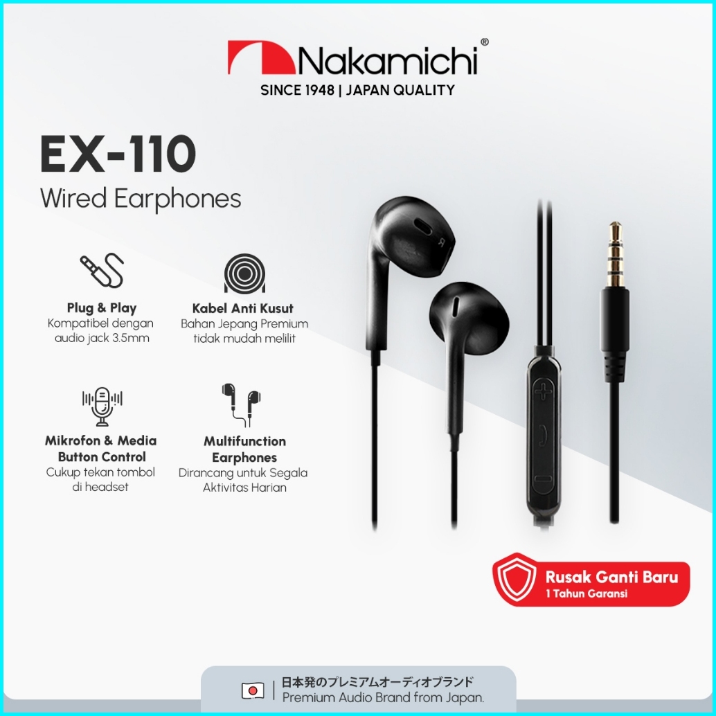 Nakamichi Ex110 Headset Kabel Premium Wired Earphone Full Bass Mic Jack 3.5mm