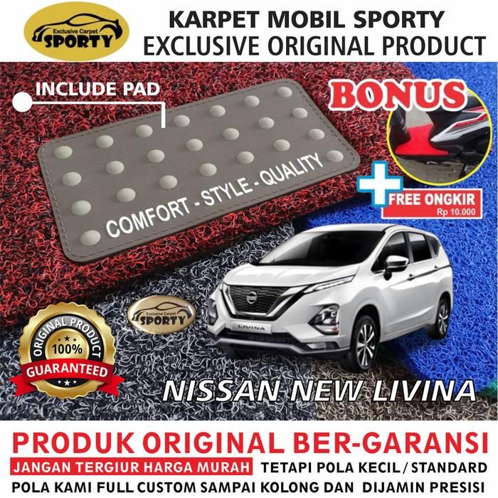 Karpet Mobil Mie Bihun NEW LIVINA Non Bagasi - Bahan 1 Warna Car - BLACK NON BAGASI