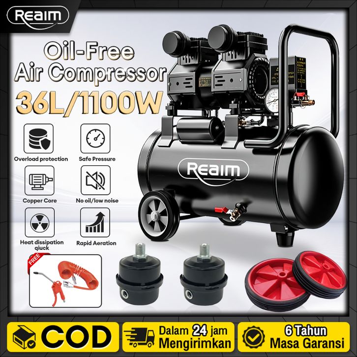 REAIM Air Kompresor Angin Mini Oilless Listrik 10L 1100W Alat Tekanan Udara Mesin Pompa Angin Kompresor Pompa