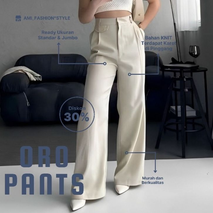 ORO Pants ORO PANTS Highwaist bahan KNIT - Celana Kulot - Celana Loose Trouser