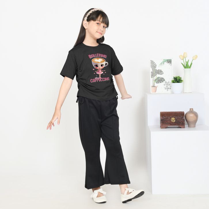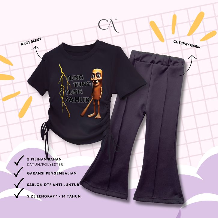 Baju Set Anak Setelan Kaos Serut Crop Top dan Cutbray Garis Anak Perempuan Ballerina Cappucina Anomali Umur 1-14 tahun