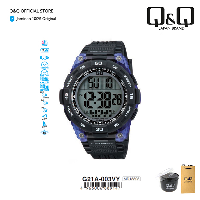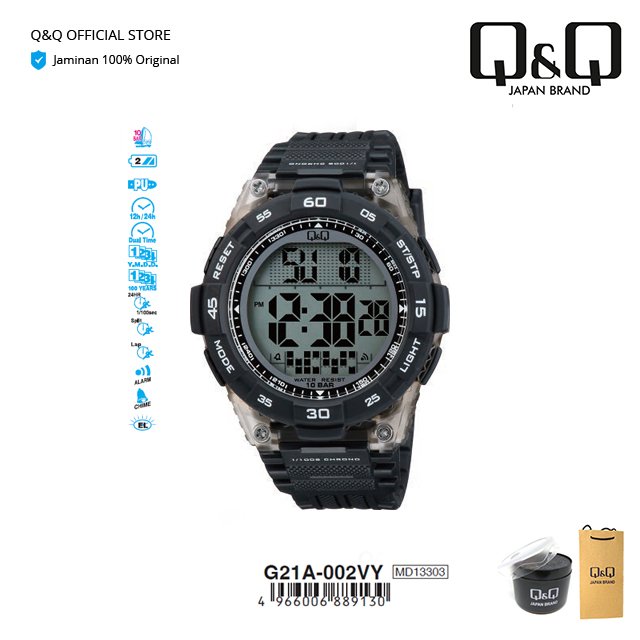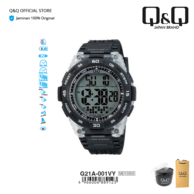 Q&Q QnQ QQ Original Arloji Jam Tangan Pria Digital Rubber Karet - G21 G21A Water Resist 10 BAR