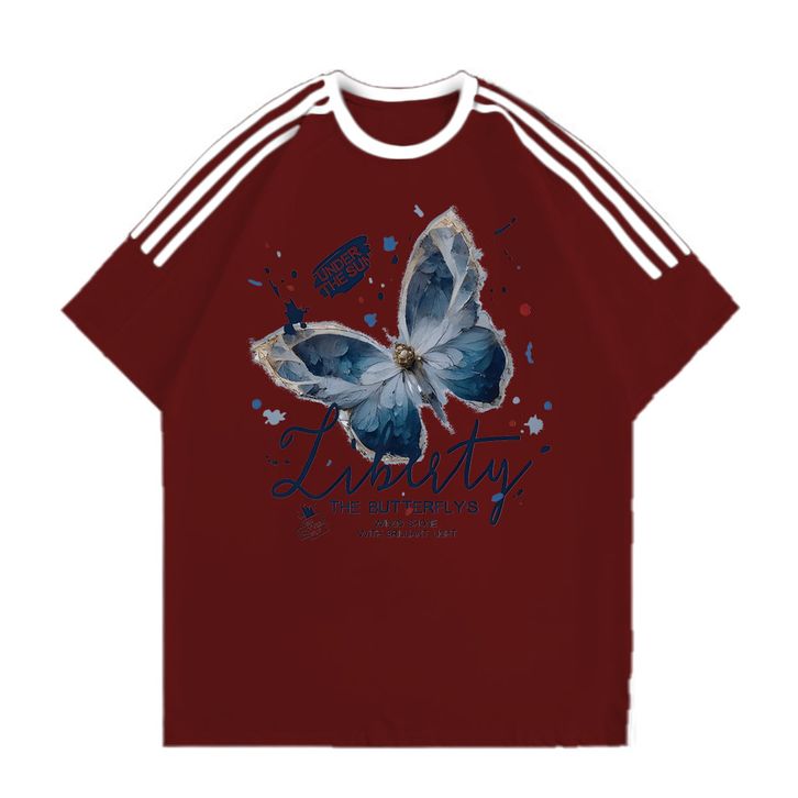 Jessica Tshirt Lengan Pendek Kaos Oversize Garis Tiga | Motif Liberty The Butterfly's |Korean Style Baju Bahan 100% Cott
