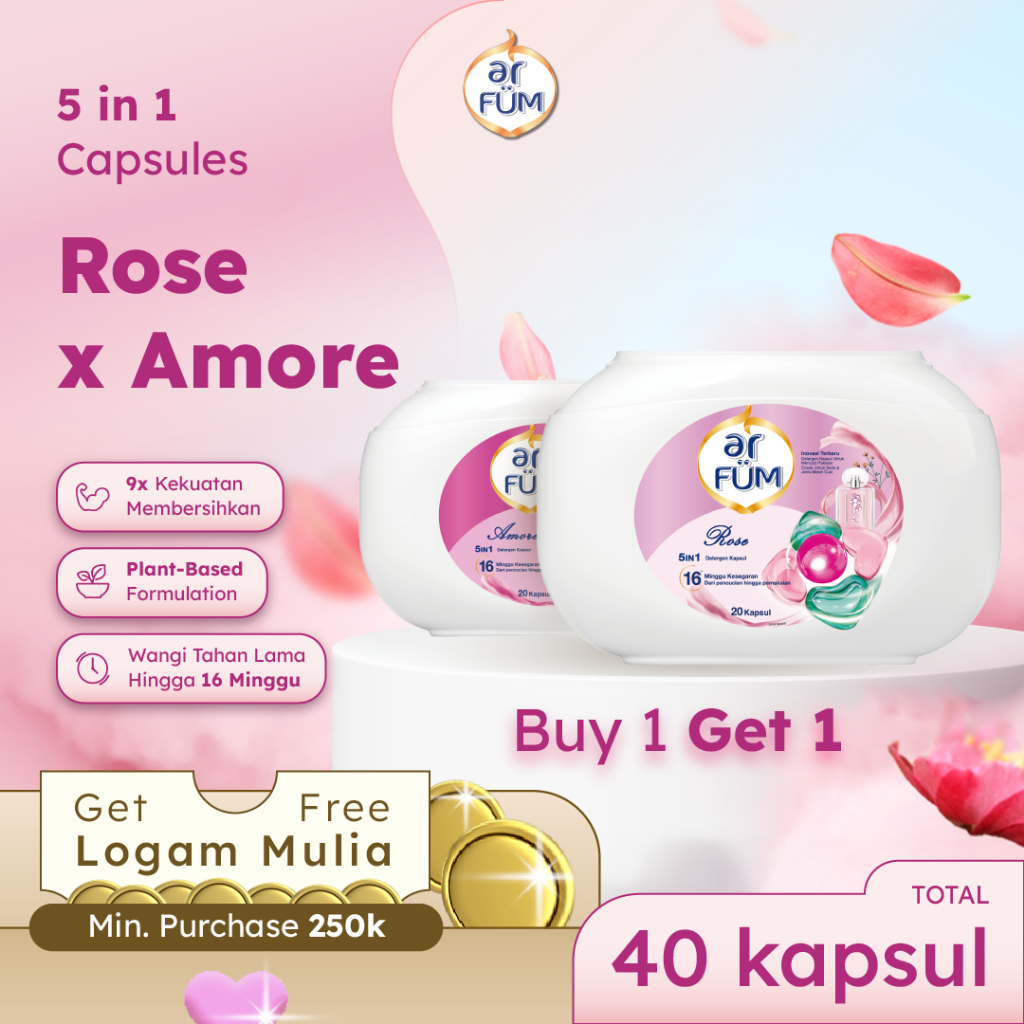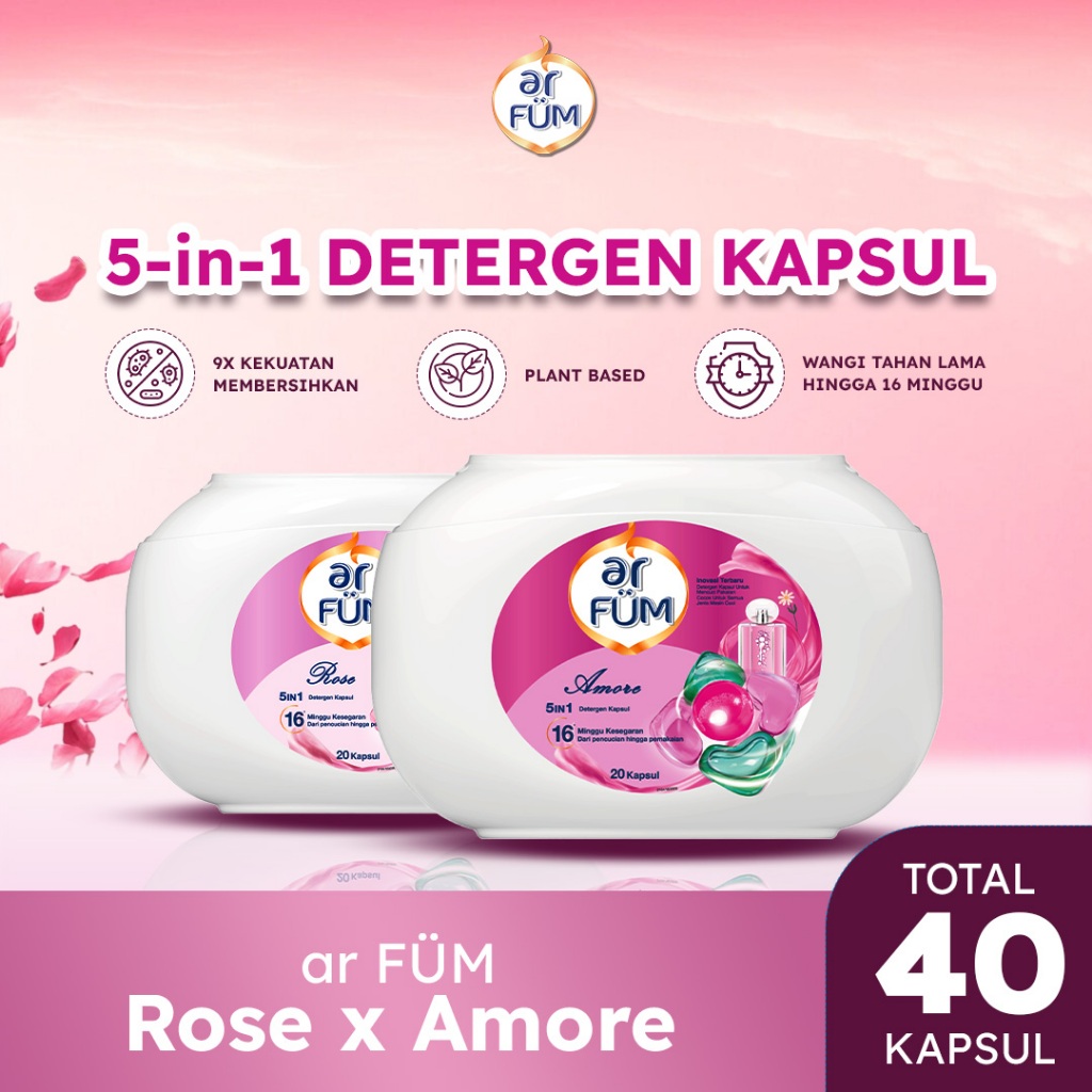 AR FUM 5IN 1 DETERGEN KAPSUL 20PCS - ROSE & AMORE - MULTIPACK PACK ISI 40PCS