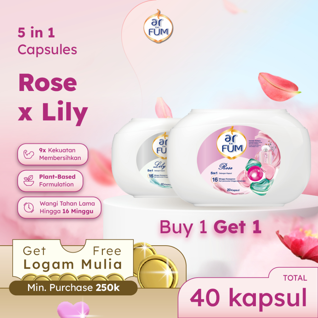 AR FUM 5IN 1 DETERGEN KAPSUL 20PCS - LILY & ROSE - MULTIPACK PACK ISI 40PCS