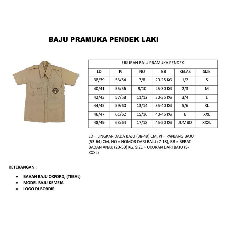 setelan seragam pramuka pendek panjang laki SD kelas 1-6 komplit