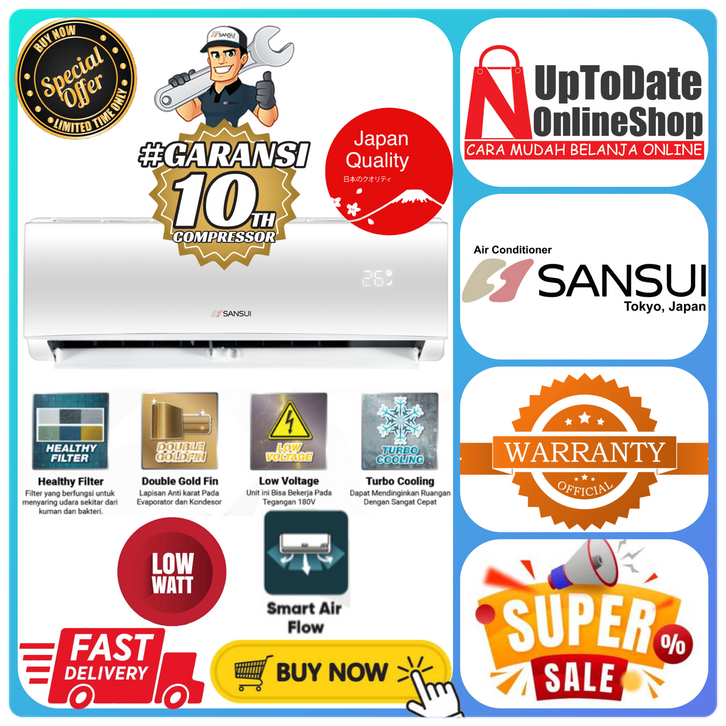 AC SANSUI L18S2 L 18S2 L18 S2 SUPER COOLING STANDARD 2 PK JAPAN QUALITY IFEEL FITUR AC SANSUI SUPER LOW WATT SANSUI AC