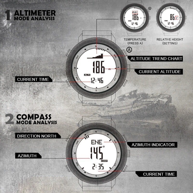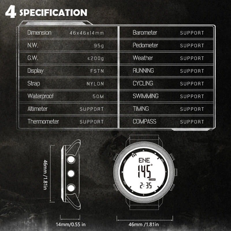 NORTH EDGE APACHE-46 Men Digital Watch Outdoor Sports Running Swimming Outdoor Sport Watches Altimeter Barometer Compass