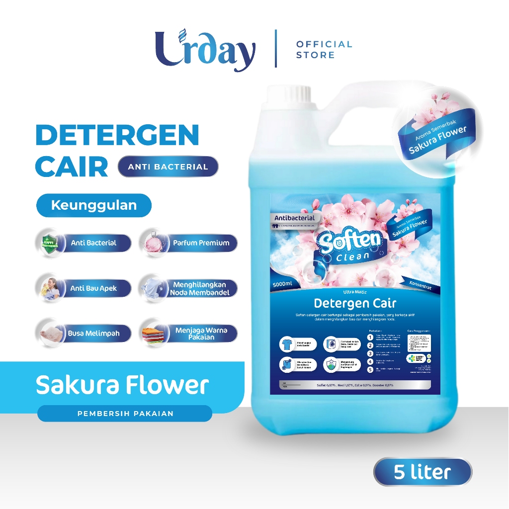 DETERJEN CAIR SAKURA FLOWER LAUNDRY - PREMIUM DETERGENT KONSENTRAT 5L (5 LITER)